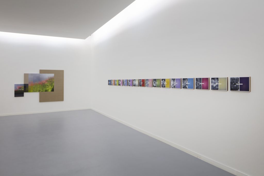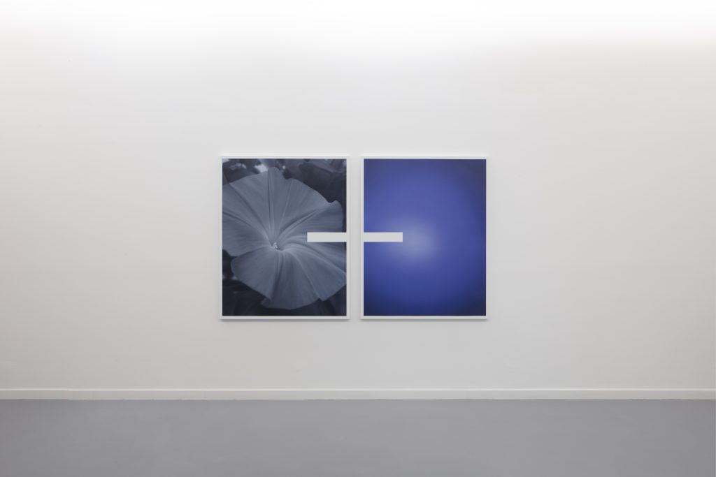 Javier ha separado a las flores de sus colores, quitando la marca de Dios, creando la suya, jugando a ser Dios, salva a las flores, quitándoles su yugo, haciendo que ellas soporten su propio peso a través de los lienzos. Javier, borra haciendo aún más nítida la creación misma. Creando flores nuevas, colores nuevos, colores que llevan los nombres de las flores, flores que llevan el nombre de los colores. Creando un vínculo inquebrantable visual a través de las líneas blancas, metafísico imborrable.