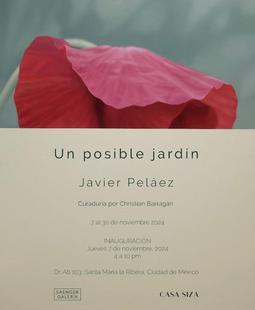 Saenger Galería y Casa Siza, nos presentan la exhibición “Un posible Jardín” del artista mexicano Javier Pelaez, el cual nos ofrece a través de su pintura un tributo a lo bello y amenazante de diversas especies florales. Lirios fragementados en estanques, amapolas acristaladas, iris negros, azaleas, damas de noche y dáturas acromáticas, tensadas con sus colores que nunca habiendo sido tan minuciosamente retratadas y analizdas a través de una obra que hace equilibrio entre lo racional y lo bello, entre -en palabras del gran curador Christian Barragán- lo análogo y lo digital.